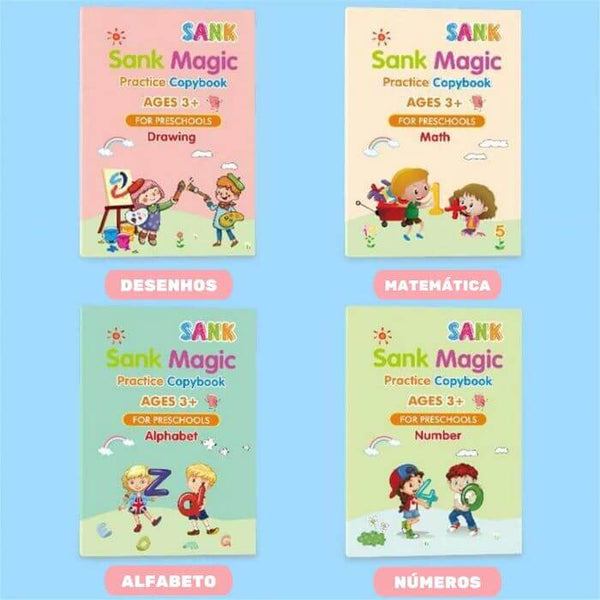KIT 4 Cadernos de Caligrafia Mágicos