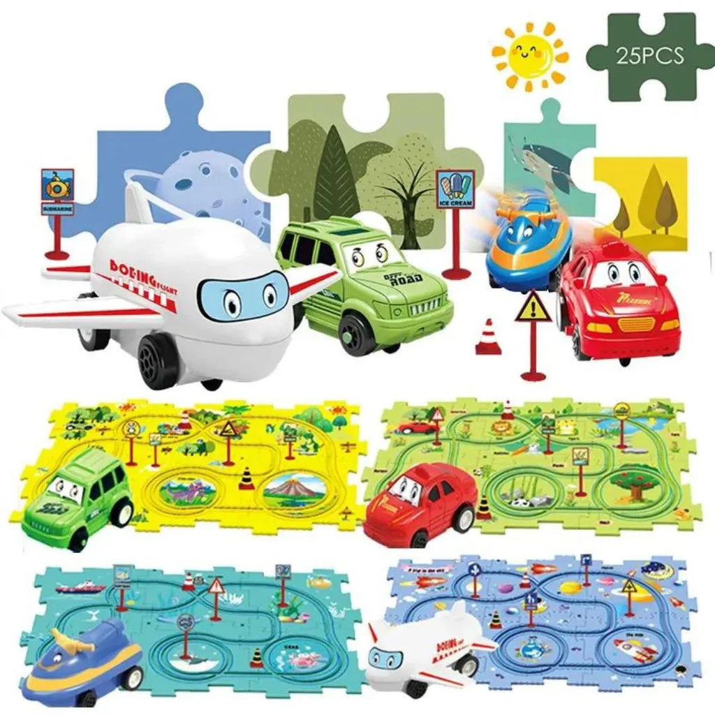 Nossos quebra-cabeças de carros são feitos com materiais seguros e livres de pontas afiadas, proporcionando uma experiência de brincar segura. Os carrinhos que se movem automaticamente pelas trilhas tornam a diversão ainda mais envolvente, afastando a necessidade de jogos eletrônicos!