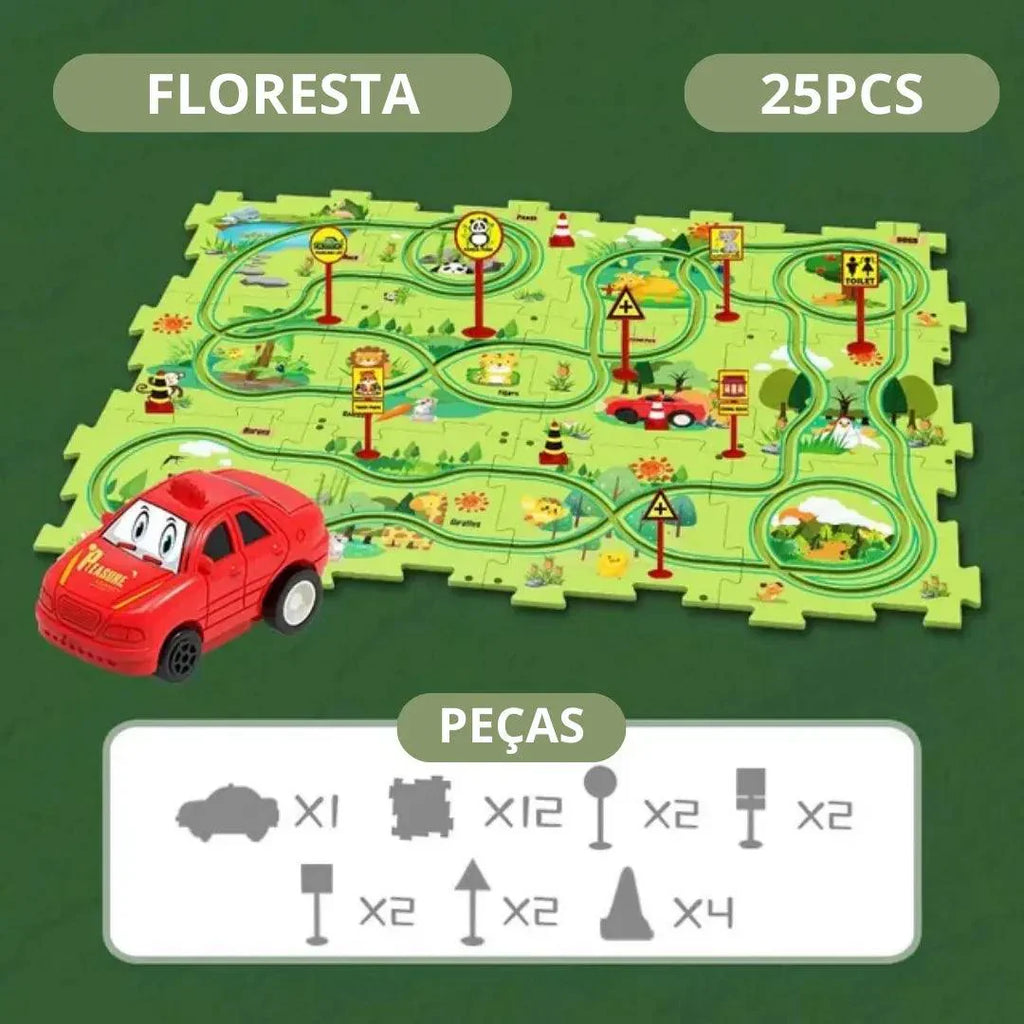 A Pista De Quebra-Cabeça Mind foi desenvolvido para estimular as áreas do cérebro em desenvolvimento das crianças, desafiando suas habilidades físicas, cognitivas e criativas em até 52% a mais do que outros brinquedos. Isso é possível graças à construção de trilhas e à resolução de problemas por conta própria.