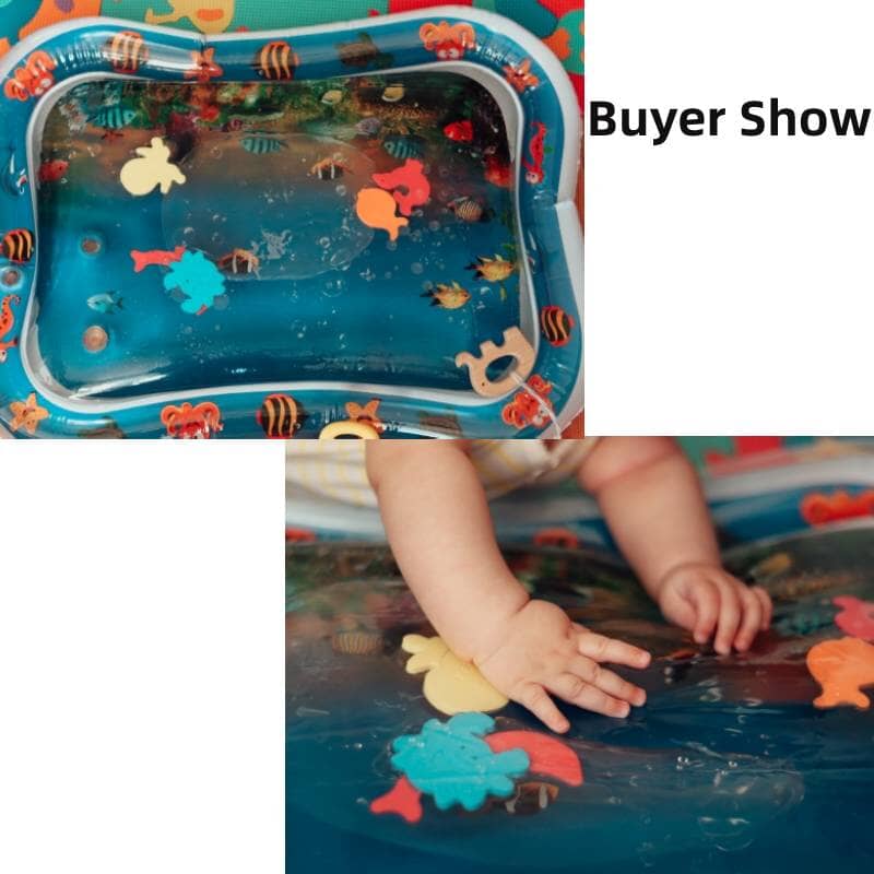 Nosso Tummy Time Mat tem brinquedos coloridos de animais marinhos que parecem estar se movendo devido ao efeito da água. Seu bebê se sentirá atraído pelas cores e movimentos e se divertirá muito brincando na esteira d'água.